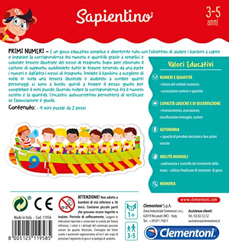 Clementoni Sapientino Primi Numeri, Gioco Educativo 3 Anni Tessere Illustrate, Gioco Per Imparare I Numeri, Made In Italy, 11958, Multicolore, 9 Mini Puzzle Bambini
