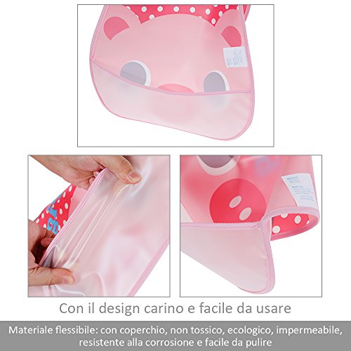 Il bavaglino impermeabile, facili da pulire.Ma attenzuione! Il bavaglino non può lavare con la lavabiancheria.